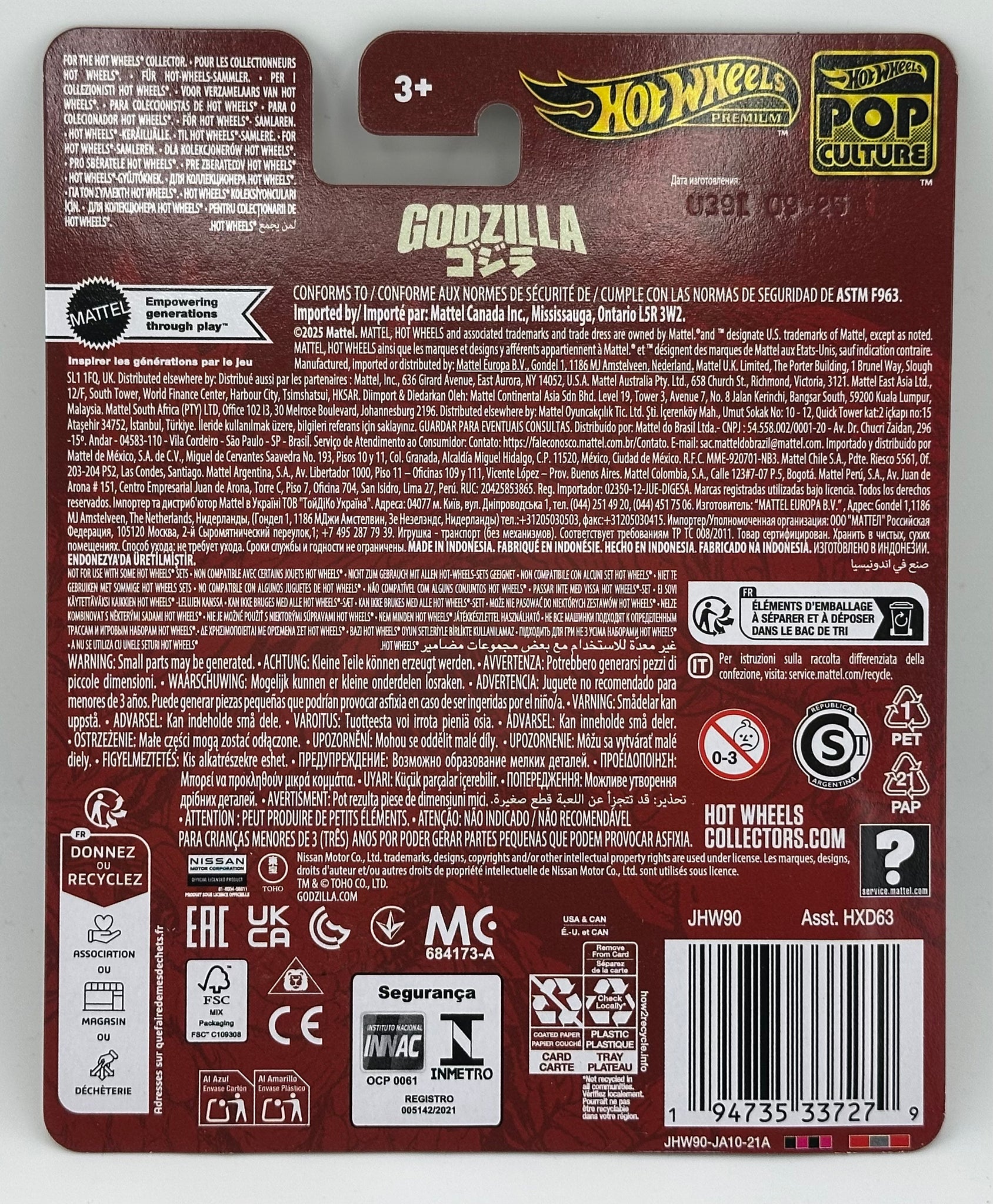 Hot Wheels Pop Culture Godzilla Nissan Skyline GT-R (BNR34) (ONE PER CUSTOMER)