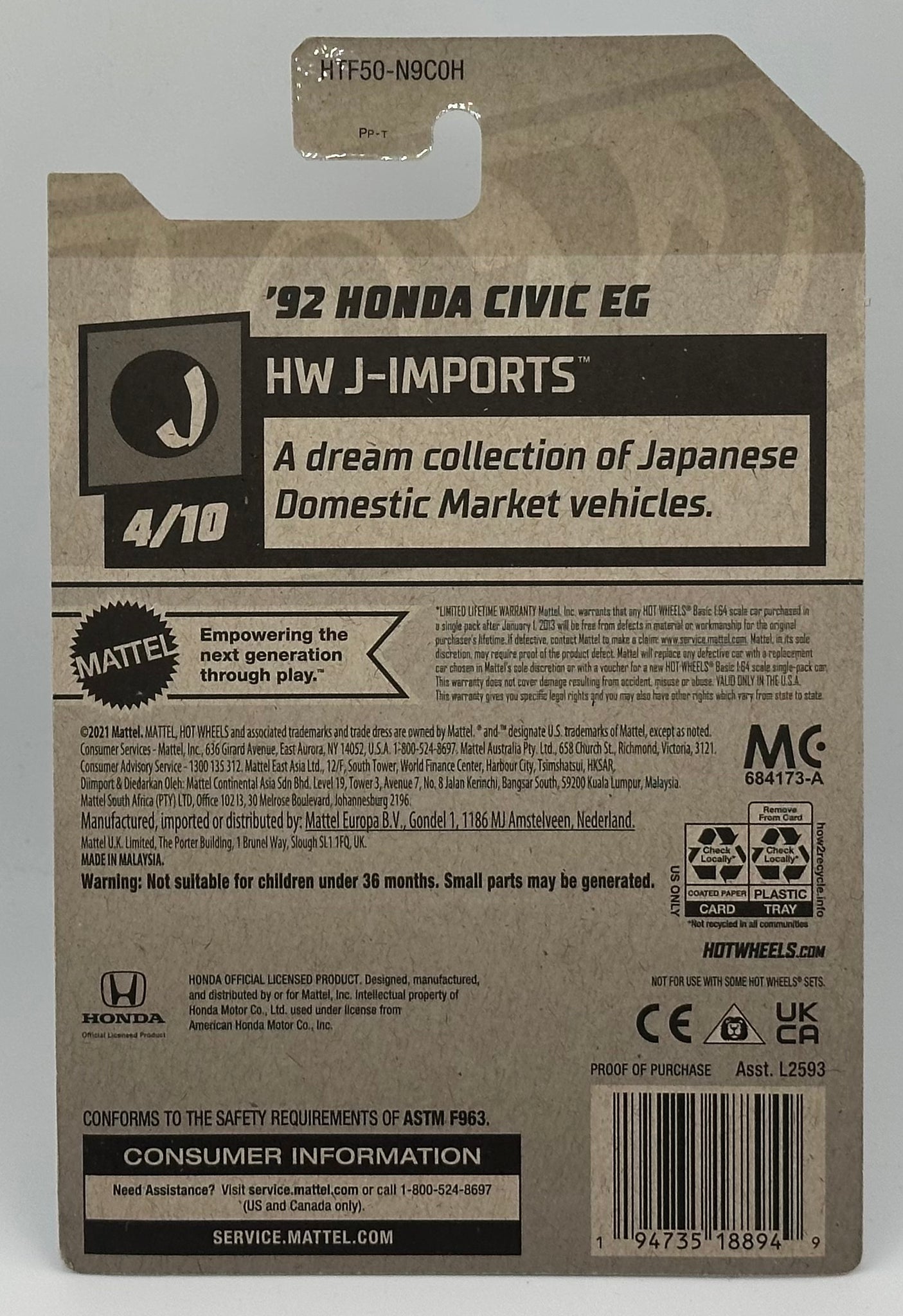 Hot Wheels Zamac '92 Honda Civic EG